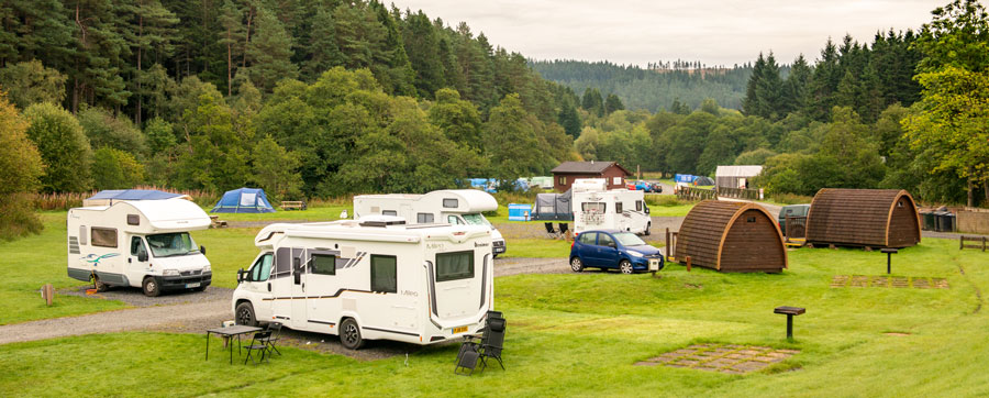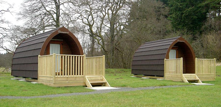Here are two of our family pods, warm sheds with a carpet, lights and power. We have six in total, each pod has a parking bay for one vehicle next to them.