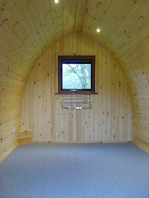 The internal floor space is 5m by 2.7m; there are no raised platforms, beds, mattresses, galley or furniture. You are in the equivalent of a wooden tent, with underfloor heating, a carpet, three pin plug sockets, these include USB sockets. For safety reasons, the plugs are a low amp rating, unable to power a microwave or other high amp rated equipment. We advise you to bring camping kettles, not the kettle from your kitchen.